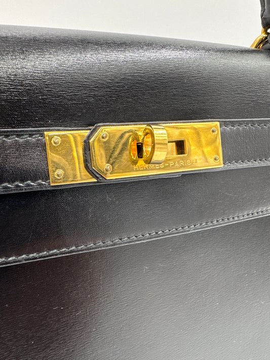 Hermes 1990 Kelly Black Box 32 Bag, Black